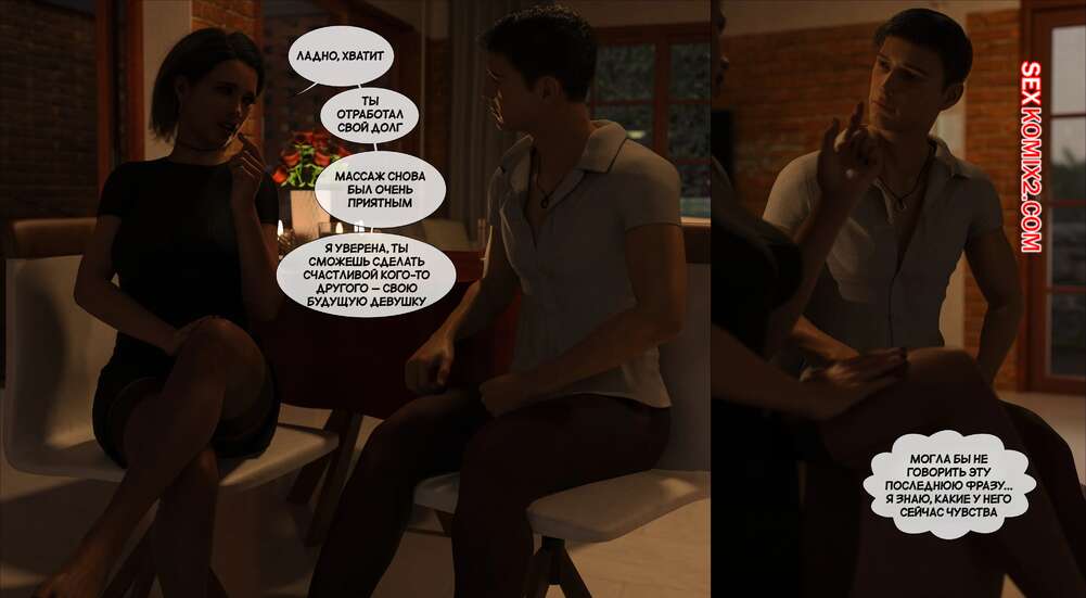 Порно комикс Материнский стыд. Часть 4. A Mothers Shame. Tal3s of Debauchery Дилан устроил романтический ужин для своей горячей мамочки, чем сильно ее удивил. Затем парнишка повела мамочку в спальню, где отлизал ее пизденку и затем хорошенько ее выебал.