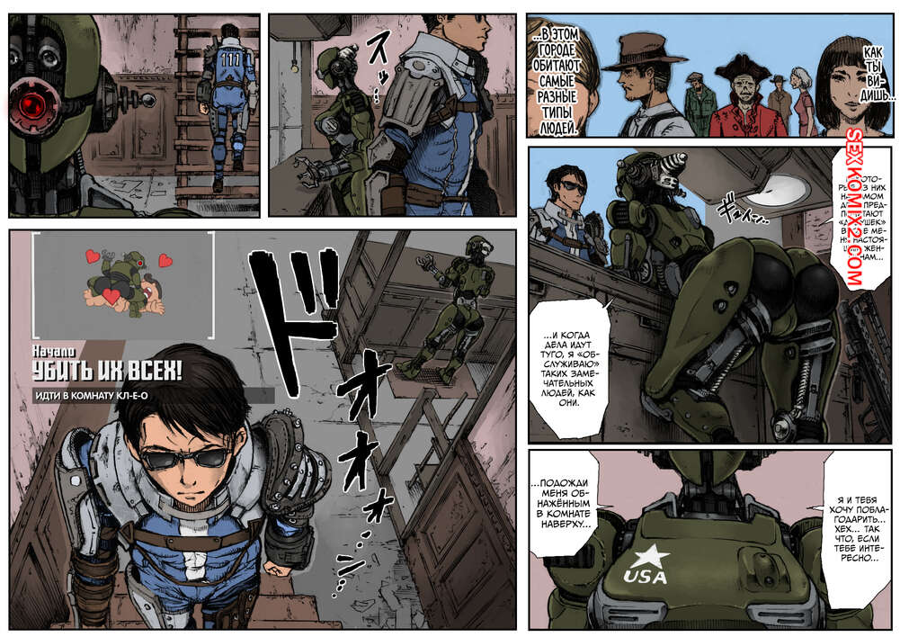ΠΠΎΡΠ½ΠΎ ΠΊΠΎΠΌΠΈΠΊΡ Fallout 4. Π£Π±ΠΈΡΡ ΠΈΡ Π²ΡΠ΅Ρ . Killem All. Double Deck ΠΠ΅Π²ΡΡΠΊΠ° ΡΠΎΠ±ΠΎΡ ΡΠΎΠ±Π»Π°Π·Π½ΡΠ΅Ρ ΠΏΠ°ΡΠ½Ρ ΡΠ²ΠΎΠΈΠΌΠΈ Π°ΠΏΠΏΠ΅ΡΠΈΡΠ½ΡΠΌΠΈ ΡΠΎΡΠΌΠ°ΠΌΠΈ. ΠΠ½Π° Π²ΡΠ·ΡΠ²Π°Π΅Ρ Ρ Π½Π΅Π³ΠΎ ΠΊΠ°ΠΌΠ΅Π½Π½ΡΠΉ ΡΡΠΎΡΠΊ, ΠΏΠΎΡΠ»Π΅ ΡΠ΅Π³ΠΎ Π½Π°Π±ΡΠ°ΡΡΠ²Π°Π΅ΡΡΡ Π½Π° ΠΏΠ°ΡΠ½Ρ ΠΈ ΡΠΊΠ°ΡΠ΅Ρ Π½Π° Π΅Π³ΠΎ Ρ ΡΠ΅, Π΄ΠΎΡΡΠ°Π²Π»ΡΡ Π΅ΠΌΡ ΡΠ΄ΠΎΠ²ΠΎΠ»ΡΡΡΠ²ΠΈΠ΅.