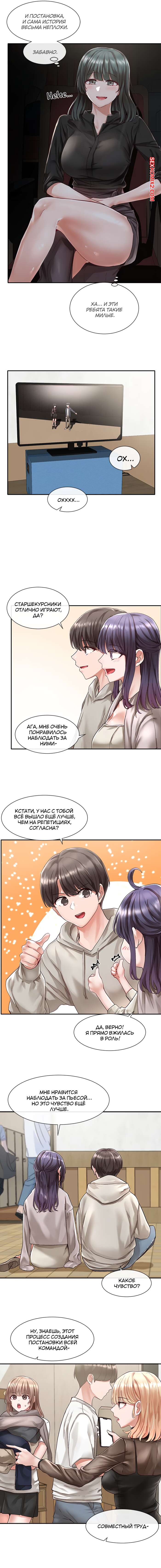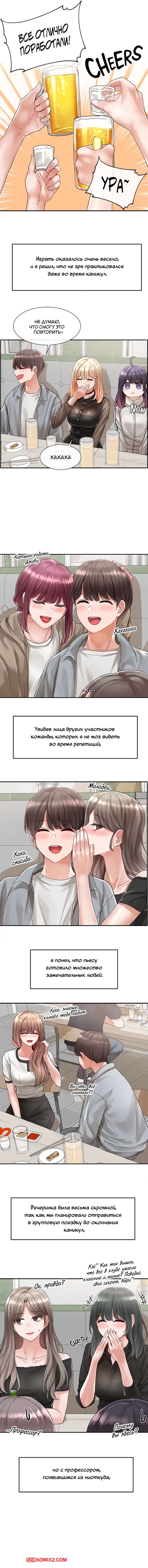 ΠΠΎΡΠ½ΠΎ ΠΊΠΎΠΌΠΈΠΊΡ Π’Π΅Π°ΡΡΠ°Π»ΡΠ½ΡΠΉ ΠΊΠ»ΡΠ±. Π§Π°ΡΡΡ 66. Theater cociety ΠΠΎΡΡΡΠ°Ρ ΠΊΡΠ°ΡΠΎΡΠΊΠ° Π±Π»ΠΎΠ½Π΄ΠΈΠ½ΠΊΠ° Ρ ΠΎΡΠΎΡΠΎ ΠΏΡΠΎΠ²Π΅Π»Π° Π²ΡΠ΅ΠΌΡ ΡΠΎ ΡΠ²ΠΎΠΈΠΌ Π΄ΡΡΠΆΠΊΠΎΠΌ ΠΈ ΠΏΡΠΈΠ³Π»Π°ΡΠΈΠ»Π° Π΅Π³ΠΎ ΠΊ ΡΠ΅Π±Π΅. ΠΠ½Π° Π±ΡΠ»Π° ΠΎΡΠ΅Π½Ρ Π²ΠΎΠ·Π±ΡΠΆΠ΄Π΅Π½Π°, ΠΏΠΎΡΡΠΎΠΌΡ ΡΠ΅Π»Π° ΠΏΠΎΠ±Π»ΠΈΠΆΠ΅ ΠΊ ΠΏΠ°ΡΠ½Ρ ΠΈ ΡΡΠ°Π»Π° Π΅Π³ΠΎ ΡΡΡΠ°ΡΡΠ½ΠΎ ΡΠ΅Π»ΠΎΠ²Π°ΡΡ.